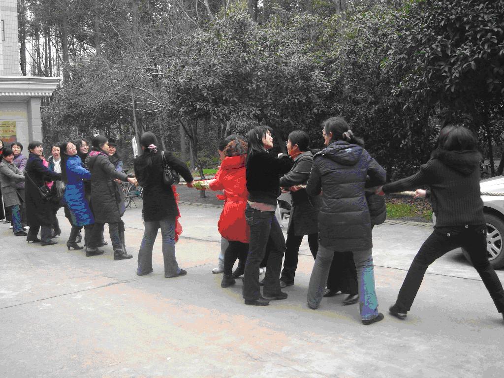 会后,学院工会在化工楼前开展了女教职工拔河比赛活动,女教工以抽签的方式分成两队进行角逐,学院分别对优胜队和参赛队给予了奖励。