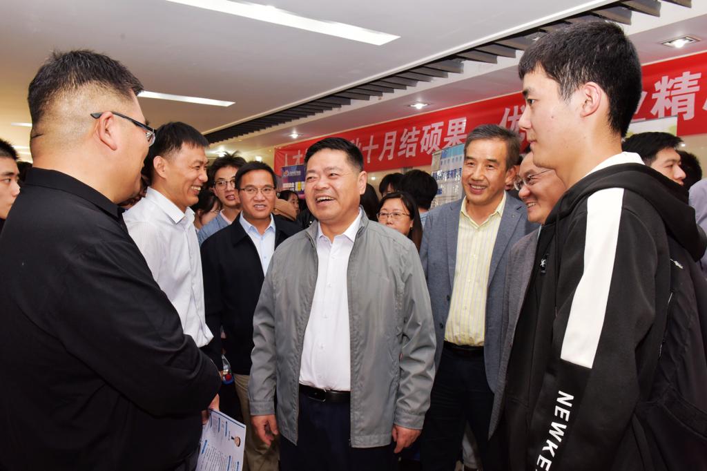 在企业招聘展台前,陆林详细询问各单位公司情况与用人需求,了解毕业生就业意向和应聘进展,倾听企业对学校人才培养和就业工作的意见建议。陆林指出,当前正值秋季求职关键期,要把学习贯彻党的二十大精神,同做好毕业生就业创业工作紧密结合起来,认真贯彻落实党中央、国务院有关就业创业的决策部署,根据国家和安徽省战略布局,主动对接经济社会和行业产业发展需要,强化就业创业教育的针对性和实效性。大力开拓市场化专业化就业渠道,为毕业生挖掘更多岗位资源、提供更多就业信息,确保取得让社会、家庭和毕业生满意的成效。