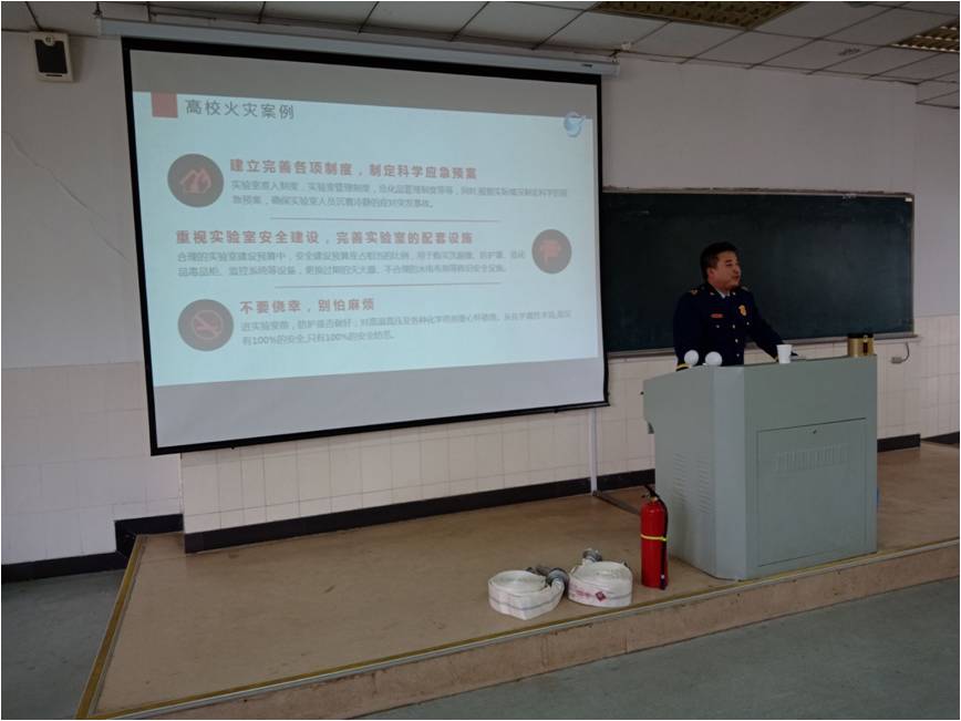 为进一步加强我校师生的消防安全意识,普及消防安全知识,2019年4月12日下午,台湾女优 委托校保卫处邀请马鞍山市花山区消防救援大队丁浩参谋为学院师生进行了消防安全知识培训及消防演练,学院教师、研究生、大四本科生等200余人参加了活动。