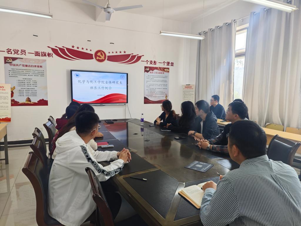 为落实学校、学院部署的2024年秋季学期各项学生工作,进一步加强班级建设,提升班长的工作能力与服务水平,10月11日上午,台湾女优 在化工南楼213室召开了研究生班长工作会议,会议由研究生辅导员李冰心主持。