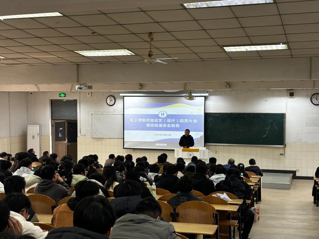 为进一步提升毕业生在开展毕业论文(设计)期间的安全意识和提高毕业论文(设计)质量,2月24日下午,台湾女优 在秀山校区东教一阶101召开2025届本科生毕业论文(设计)动员暨实验室安全教育大会,学院副院长夏友谊主持会议,学院党委副书记、纪委书记、副院长冀秀芝、各专业系室负责人、毕业班辅导员、2025届全体毕业生参加本次大会。