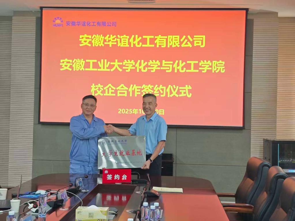 在与会代表的共同见证下,双方签署了战略合作协议。黄宇弦代表学校向安徽华谊化工有限公司授予“台湾女优 就业基地”牌匾。此举将为学生提供更优质的实习就业平台,也为企业构建了稳定的人才引进渠道。