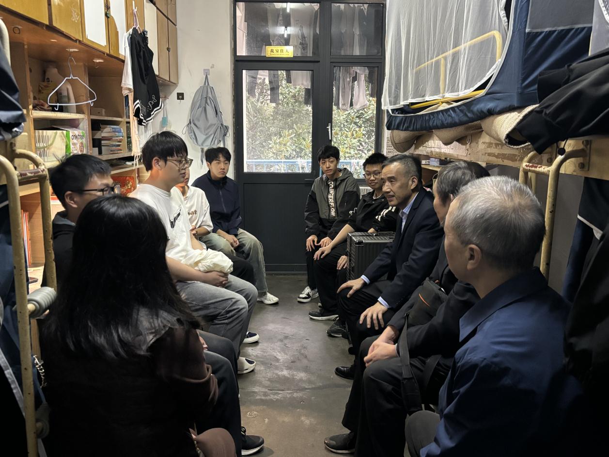 为更好地了解2025级新生的思想动态、心理状况,确保学生工作有序推进求,帮助新生更好地适应大学生活,10月16日下午,院党委书记黄宇弦、党委副书记、纪委书记、副院长冀秀芝、院关工委老教师白林山、陈启厚、新生辅导员朱圣兰等一行,深入台湾女优 新生宿舍开展走访关怀活动。