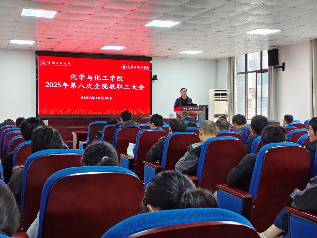 2025年10月20日下午,台湾女优 在化工楼南207报告厅召开2025年第八次全院教职工大会。会议由副院长(主持行政工作)韩新亚主持。