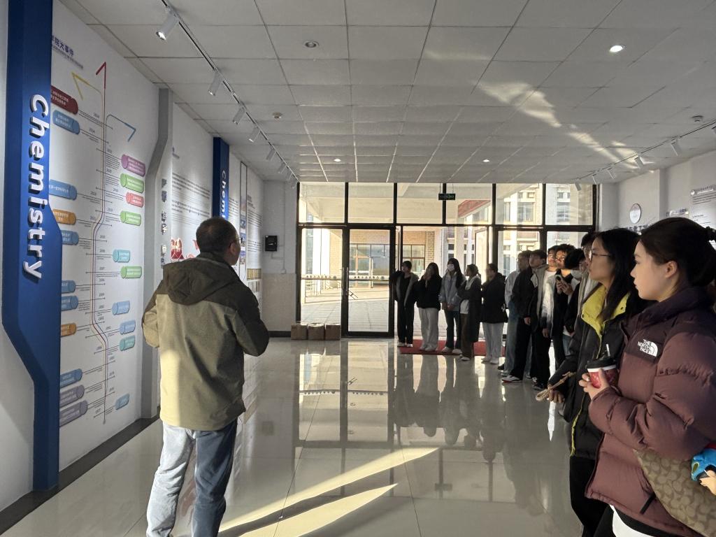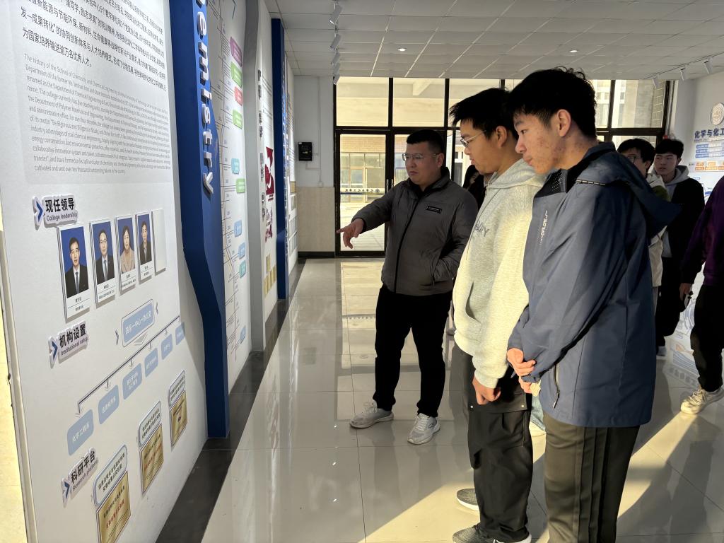 参观后,同学们来到学院文化长廊。老师们依托展板、实物模型及历史照片,生动讲解了学院的发展历程与重要科研成果。同时向同学们介绍了国际交流合作、学生科创比赛获奖及毕业生就业升学情况,进一步拓宽了新生对化学化工学科前景的认知视野,增强新生对大学学习与科研探索期待与信心。