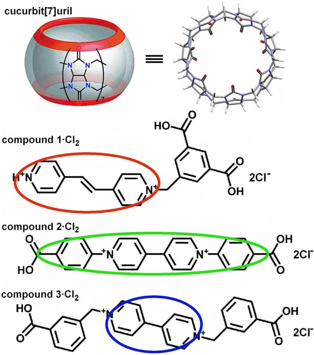 (瓜环和三种紫精衍生物的机构示意图)