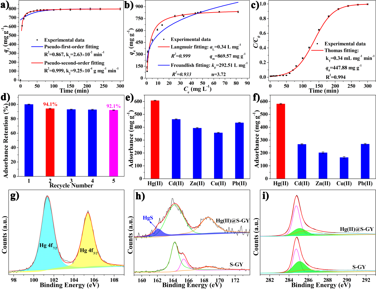 所合成原位硫掺杂石墨单炔的Hg(II)吸附性能