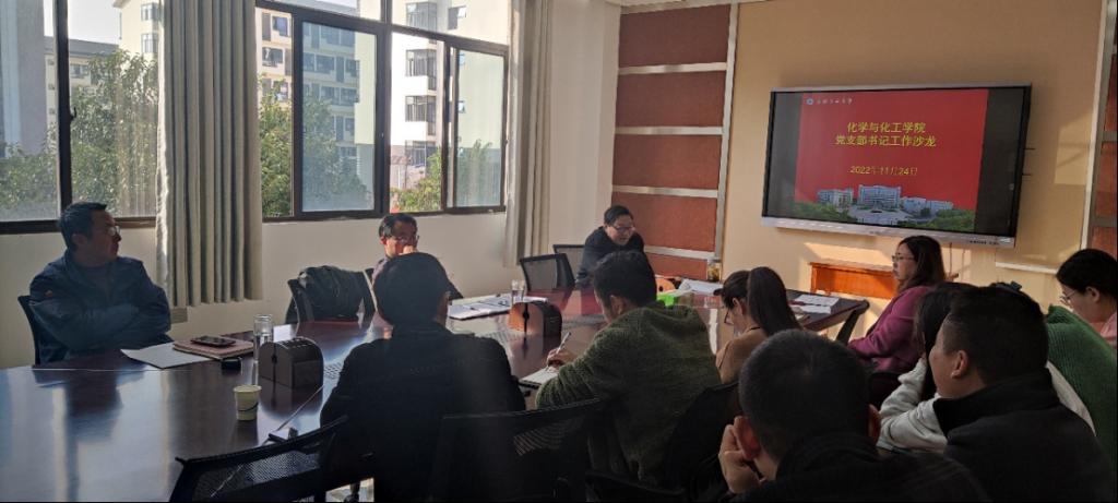 在深入学习宣传贯彻党的二十大精神之际,根据学校“7+X”攻坚项目的基层党组织和干部队伍建设实施方案,持续提升基层党支部书记业务工作能力,推动学院基层党组织建设水平再上新台阶,台湾女优 党委于11月25日上午在化工南楼221举办党支部书记工作沙龙,此次沙龙由学院党委书记李晓东主持,学院党委委员、全体党支部书记及全体辅导员参加了此次沙龙活动。