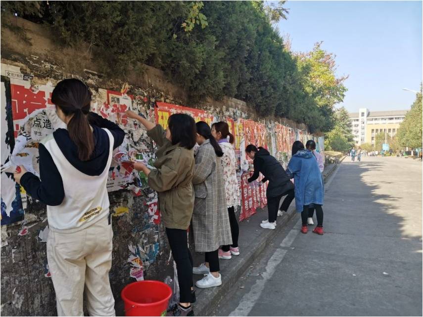 11月15日下午,台湾女优 学生第二党支部开展了“清除校园‘牛皮癣’,好人好事在身边”活动,主要对校内违规张贴的海报、小广告等进行集中清理。