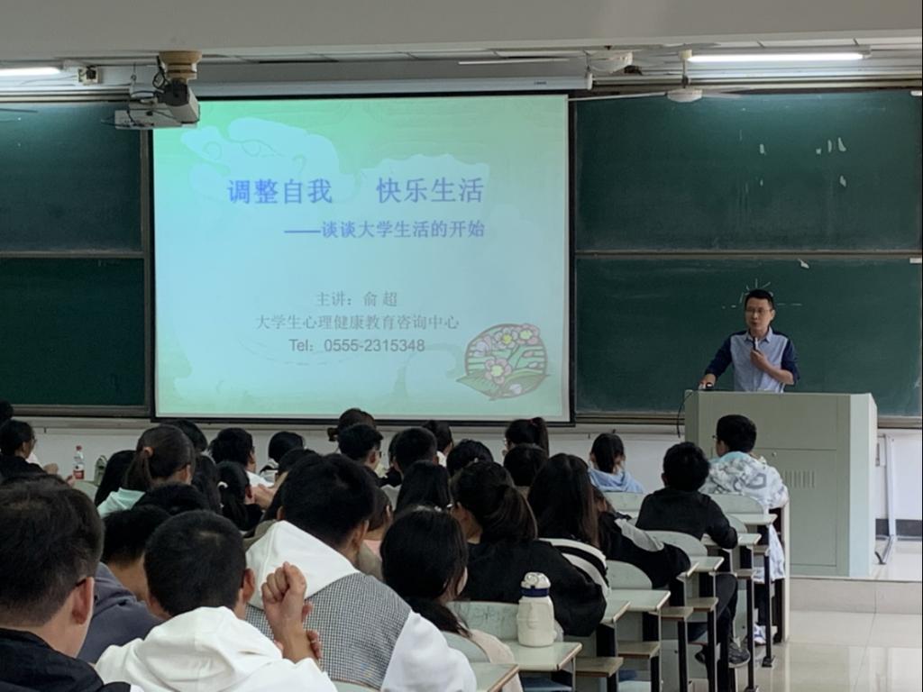 10月17日下午,台湾女优 在佳山校区教三南401举办新生入学适应心理讲座。校大学生心理健康教育咨询中心俞超老师应邀主讲,台湾女优 心理工作站站长朱圣兰老师主持,全体新生聆听此次讲座。