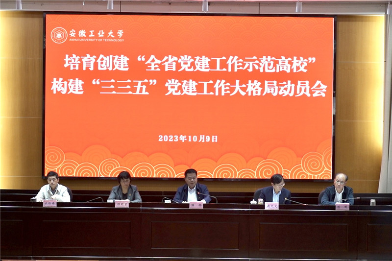 10月9日下午,学校在会议中心四楼报告厅召开培育创建“全省党建工作示范高校”构建“三三五”党建工作大格局动员会,全面部署今后一个时期党建示范校培育创建的具体工作,动员全校各级党组织、广大党员干部深入推进我校党建示范创建和质量创优,全力构建“三三五”党建工作大格局,全力促进我校党建工作高质量发展。全体在校校领导、党委常委,校党委委员、纪委委员,全体中层干部,支部书记代表参加会议。会议由校党委常委、副校长刘明主持。